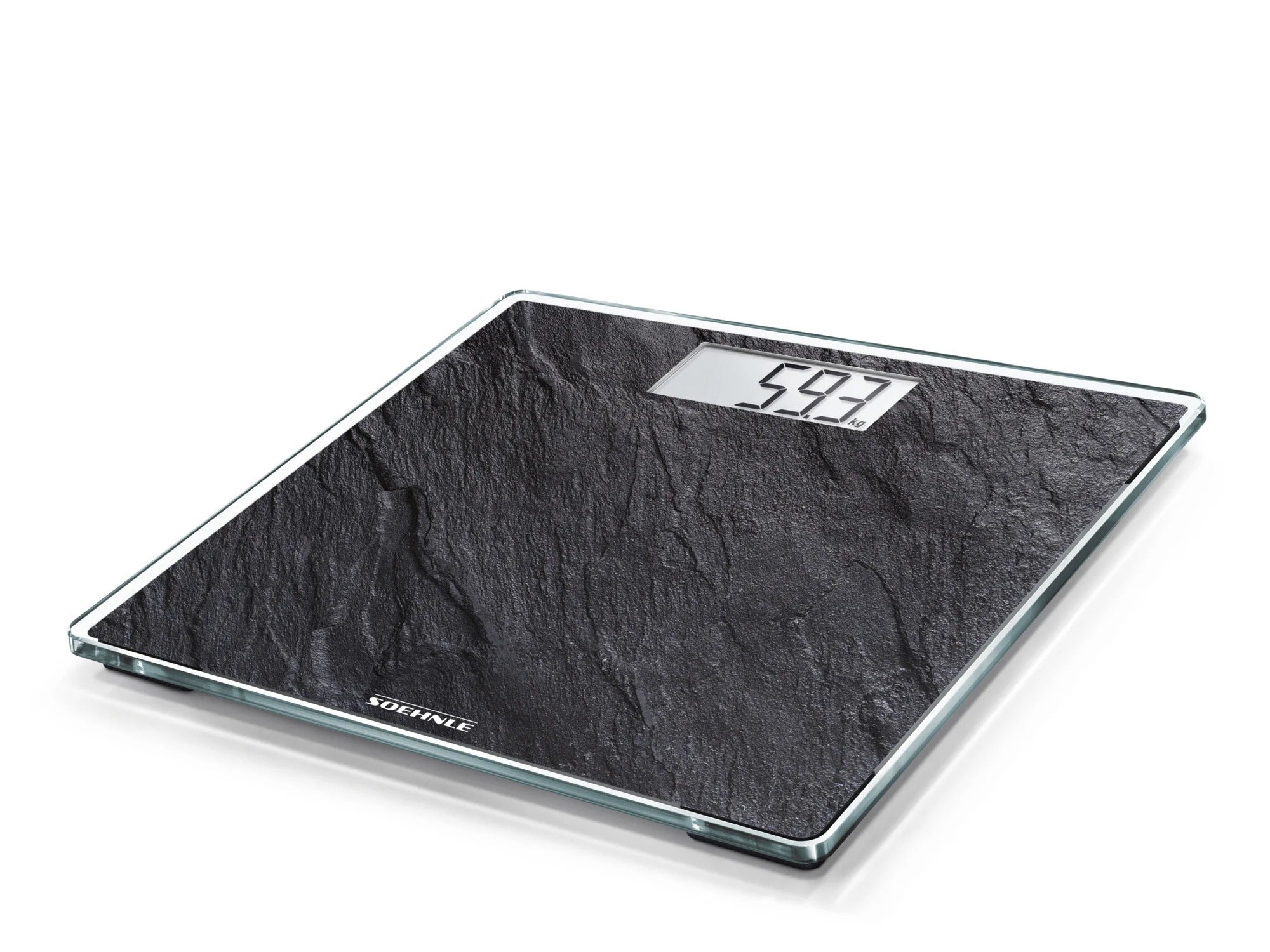 המשקל הדיגיטלי Style Sense Compact 300 Slate מבית Soehnle, בעיצוב אלגנטי במראה אבן, הוא פריט עיצוב ייחודי שמוסיף סטייל לכל חדר. משטח השקילה הרחב עשוי זכוכית בטיחות איכותית, מבטיח עמידה נוחה ויציבה עם כושר נשיאה מרבי של 180 ק"ג. המשקל נדלק אוטומטית עם הדריכה עליו ומציג את תוצאת המשקל על גבי צג LCD בצורה ברורה וקריאה בדיוק של 100 גרם, ולאחר השימוש נכבה באופן אוטומטי – לחיסכון באנרגיה והארכת חיי הסוללה.